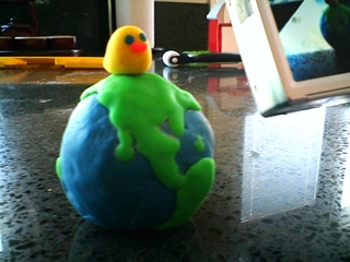 ねんどで作った地球とひよこ